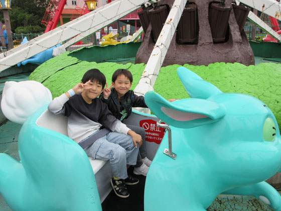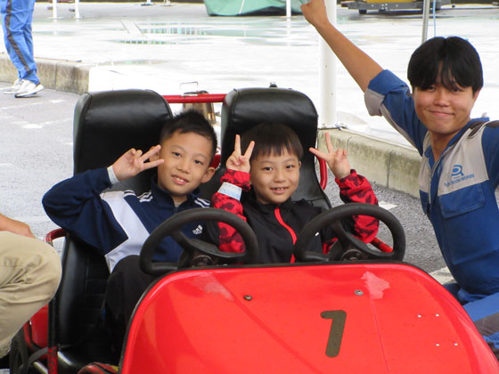 園内のレストランで食事をした後、ゴーカートやジェットコースターなど好きな遊具で何度も楽しんでいました。